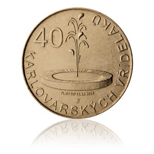 Hlavním motivem averzní strany žetonu je nominál „40 Karlovarských vřídeláků“ a vyvěrající pramen. Pro reverzní stranu autor použil znak města Karlovy Vary doplněný textem v opisu „Statutární město Karlovy Vary“.
