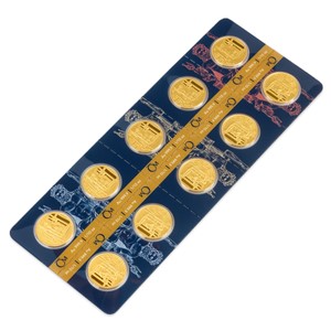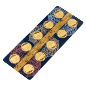 Deset identických mincí je zataveno do speciálního balení. To je perforováno, aby v případě potřeby mohlo být pohodlně rozděleno na deset částí.