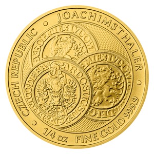 Jak se z jáchymovských tolarů staly americké dolary? Tento neuvěřitelný příběh vám připomene investiční mince České mincovny vyražená z jedné čtvrtiny trojské unce ryzího zlata.