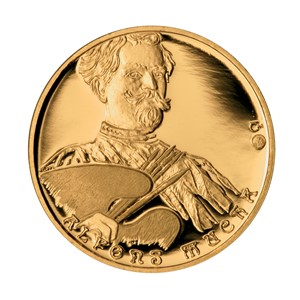Zlatá čtvrtuncová medaile Alfonse Muchy proof