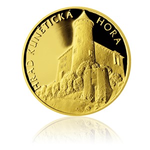 Zlatá čtvrtuncová medaile Hrad Kunětická hora proof