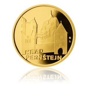 Zlatá čtvrtuncová medaile Hrad Pernštejn proof