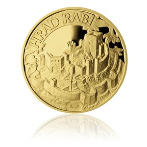Zlatá čtvrtuncová medaile Hrad Rabí proof
