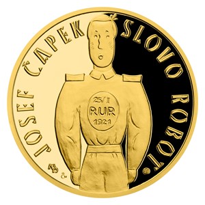 V roce 2020 uplynulo rovných 100 let od uvedení divadelní hry R.U.R., ve které poprvé zaznělo nejslavnější české slovo na světě – robot. U příležitosti tohoto výročí vychází čtvrtuncová zlatá medaile České mincovny z cyklu Příběhy naší historie.