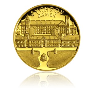 Počátky historie zámku sahají do 15. století. Původně zde byla tvrz, později panský kamenný dům a koncem 17. století malý barokní zámek. Teprve od roku 1820 začíná doba největšího stavebního a uměleckého rozkvětu zámku, spojená s rodem Rohanů. Rod Rohanů pocházel původně z Bretaně a patřil mezi desítku nejvlivnějších šlechtických rodů Francie. Po Velké francouzské revoluci jedna z větví rodu Rohanů Francii opustila, přesídlila do rakouské monarchie a jejich hlavním sídlem se stal zámek Sychrov. Původní zchátralý barokní zámeček velkolepě přestavěl již první majitel v duchu empíru. Stavební vývoj však pokračoval a dnešní novogotická podoba pochází z poloviny 19. století, z doby knížete Kamila Rohana. Na vysoké umělecké hodnotě exteriérů i interiérů zámku se podílelo mnoho českých umělců a řemeslníků. Kníže Rohan věnoval velkou pozornost i budování zámeckých zahrad a parku. V tomto období bylo dosaženo vzácné harmonie všech exteriérů staveb, zařízení a výzdoby interiérů a také parků a zahrad. V dnes státním zámku probíhají rozsáhlé rekonstrukce a restaurace s cílem navrátit zámku novogotickou podobu poloviny 19. století. Na averzní straně medaile je zámek zobrazen z ptačí perspektivy. Tak nejvíce vyniknou exteriérové prvky a rozlehlost a členitost jednotlivých staveb, stejně jako dvě dominanty zámku – Bretaňská a Rakouská věž. Vyobrazení z nadhledu umožňuje také zachytit spolu se zámkem i část zahrady s altánem. Ve vrchní části medaile je v opisu text SYCHROV ZÁMEK. Na reverzní straně je v nízkém reliéfu zachycena část výzdoby interiérů, stropu z knížecího salonu ze severního křídla zámku. Centrálně umístěný erb rodu Rohanů, dělený štít, drží po stranách dva lvi. Nad štítem je knížecí koruna s erbovním pláštěm. Limitovaná emise 500 kusů.