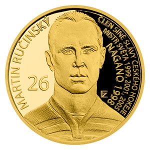 Posledním „zlatým hochem“ z Nagana, který se objevuje na zlatých mincích České mincovny z cyklu Legendy československého hokeje, je Martin Ručinský.
