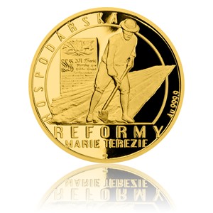 Druhá zlatá mince ze čtyřdílné minisérie Reformy Marie Terezie, která vychází u příležitosti 300. výročí narození osvícené panovnice, připomíná její významné pokroky v oblasti hospodářství.