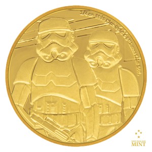 Reverzní strana mince předkládá polopostavy dvou stormtrooperů ozbrojených blastery na palubě Hvězdy smrti. Vydavatelem mince je tichomořský ostrov Niue, a její averzní strana proto nese jeho atributy – portrét a jméno královny Alžběty II., rok vydání mince 2019 a nominální hodnotu 25 DOLLARS (NZD). Podoba oficiálně licencované ražby je dílem výtvarného kolektivu New Zealand Mint.