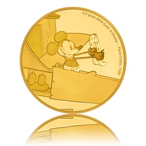Černobílá groteska Plane Crazy z roku 1928 se může pochlubit mimořádným prvenstvím – vůbec poprvé se v ní objevil animovaný myšák jménem Mickey, kterého si zamilovaly generace dětí i dospělých. Právem jí proto patří zlatá mince z Disneyho sběratelské série.