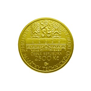 Zlatá mince 2500 Kč 2007 Vodní mlýn ve Slupi stand