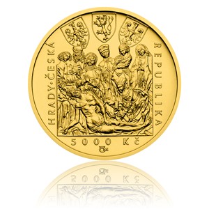 Hlízová věž pochopitelně nemůže chybět ani na zlaté minci – spolu s Píseckou branou, věží Hláskou a kaplí svatého Václava ji najdete na reverzní straně. Averzní strana pak předkládá dokonalé ztvárnění dřevořezby hradního oltáře Oplakávání Krista, které medailérovi Lubošovi Charvátovi zajistilo první místo ve výtvarné soutěži České národní banky.