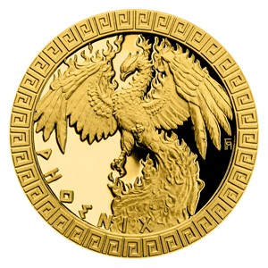 Druhá zlatá mince České mincovny ze sběratelského cyklu Bájní tvorové představuje Fénixe.