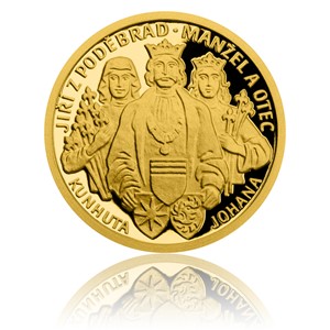 Jiří z Poděbrad byl dvakrát ženatý a zplodil celkem deset dětí. Obratnou sňatkovou politikou navázal silné vztahy s mnoha mocnými šlechtickými rody, a pokračoval tak ve snaze zajistit Českému království místo na slunci. Závěrečná zlatá mince České mincovny z minisérie Doba Jiřího z Poděbrad proto náleží králi v úloze manžela a otce.