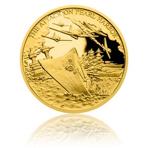 Čtvrtá a závěrečná zlatá mince ze sběratelské minisérie Válečný rok 1941 připomíná zákeřný akt, který se paradoxně stal klíčem k vítězství Spojenců ve druhé světové válce – útok na Pearl Harbor.
