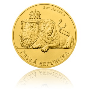 Zlatá pětiuncová investiční mince Český lev 2017 stand