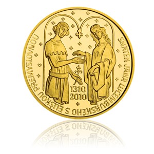 Medaile je vydávána u příležitosti 700. výročí královského sňatku Elišky Přemyslovny a Jana Lucemburského. Má připomenout historický význam dynastického propojení střední a západní Evropy a politický odkaz prvního Lucemburka na českém trůně, který 3. prosince 1310 pojal za svou choť Elišku Přemyslovnu a ovládl Prahu. Na 7. únor 2011 pak připadá 700. výročí korunovace tohoto královského páru. Jan Lucemburský (10. srpna 1296 – 26. srpna 1346), hrabě lucemburský známý též pod přízviskem Slepý, desátý český král (1310-1346), byl korunován 1311, dočasně i titulární král polský. Byl spíše válečník, statečný rytíř a diplomat než rozvážný český král. Po roztržce s Eliškou Přemyslovnou, kterou nechal uvěznit na Mělníku, pobýval většinou mimo Čechy. V zahraničí ovšem hájil zájmy českého státu. Roku 1322 získal trvale Chodsko, v roce 1329 rozšířil český stát o Horní Lužici, pak i o část Slezska. V roce 1335 urovnal spory českých, polských a uherských králů tím, že se zřekl polské koruny a Kazimír III. Veliký polských nároků na slezská léna. Jan Lucemburský posílil měnu a od roku 1325 začal razit zlaté dukáty (3,35g). Padl v bitvě u Kresčaku v roce 1346 v boji s Angličany ve stoleté válce na straně francouzského krále. Na averzní straně je katedrála ve Špýru, kde se konal sňatek Elišky Přemyslovny a Jana Lucemburského, po stranách provázena znaky s českým a lucemburským lvem. Mezi věžemi je královská koruna, při spodní linii chrámové architektury je monogram „I“ a „E“ tvořený propletenými středověkými literami. Plochu pokrývají drobné kvítky. Kompozici uzavírá opis se jmény snoubenců IOHANNES – ELISABETH. Motiv královského sňatku na reverzní straně vyjadřuje dvojice Elišky Přemyslovny a Jana Lucemburského. Jejich polopostavy podávající si ruce rámují dva oblouky. Ty, spolu s kvítky pokrývajícími plochu jako na averzu, jsou citací motivů z gotické knižní malby. Květy na pozadí a další, který Jan drží v ruce, zároveň upomínají na slavnostní svatební den. Při spodním okraji probíhá opis SŇATEK JANA LUCEMBURSKÉHO S ELIŠKOU PŘEMYSLOVNOU a nad ním letopočty 1310, 2010. Limitovaná emise 600 kusů, číslovaná na hraně