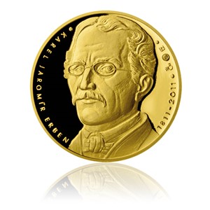 Karel Jaromír Erben, český historik, právník, archivář, dnes především známý jako básník a prozaik, folklorista a překladatel, se narodil 7. listopadu 1811 v Miletíně u Hořic v Podkrkonoší. Po studiích na gymnáziu v Hradci Králové studoval právnickou fakultu v Praze, poté byl zaměstnancem Královské české společnosti nauk a sekretářem Českého muzea. Od roku 1851 působil jako archivář města Prahy a od roku 1864 se stal ředitelem pomocných úřadů pražských. Během studií se Erben stýkal s Karlem Hynkem Máchou. Později se seznámil s Františkem Palackým, s nímž spolupracoval do konce života a jehož politickými názory byl trvale ovlivněn. Erben je znám především jako sběratel lidové poezie. Ve smyslu názorů bratří Grimmů hledal v ústní lidové slovesnosti odraz starých náboženských mýtů, jež lidové podání a tradice během věků často překryly. Výsledkem Erbenovy sběratelské činnosti byly tři svazky Písní národních v Čechách (1842–1845); jejich přepracované a rozšířené vydání vyšlo roku 1864 s titulem Prostonárodní české písně a říkadla. Nejvíce však Karel Jaromír Erben proslul svou vlastní tvorbou, jak veršovanou, tak prozaickou. Jeho jediná básnická sbírka vyšla poprvé v roce 1853 s názvem Kytice z pověstí národních, podruhé roku 1861 v rozšířené verzi pod titulem Kytice z básní K. J. Erbena. Jádrem této sbírky je dvanáct básní oddílu Pověsti národní, jimž předchází úvodní báseň Kytice. Na averzní straně medaile je portrét K. J. Erbena, v opisu je umístěn text "KAREL JAROMÍR ERBEN 1811–2011, značka mincovny a autora. Na reverzní straně jsou do stylizovaného tvaru květu vymodelovány některé výjevy ze sbírky Kytice - např. Poklad, Svatební košile, Polednice, Vodník, Vrba atd. V opisu je umístěn nápis "KYTICE Z POVĚSTÍ NÁRODNÍCH Au 999,9 1/2 Oz". Limitovaný náklad 200 kusů, číslováno.