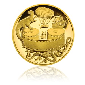 Před sto lety se narodil Karel Zeman, scénárista, výtvarník a režisér. Jeho trikové, kombinované kreslené a loutkové filmy se zapsaly do pokladnice světové kinematografie. Již v roce 1955 natočil téměř kultovní celovečerní film Cesta do pravěku. Kombinováním reality a trikových záběrů se stal předchůdcem, dnes samozřejmě daleko dokonalejších ale možná ne tak milých filmů, jako je například celosvětově úspěšný a miliony dolarů vydělávající Jurský park. Karel Zeman přenesl fantazii na filmové plátno. Jeho loutkové filmy získávaly Československu ocenění na světových festivalech již záhy po válce. Dodnes se promítají veselé příběhy pana Prokouka, po Cestě do pravěku se staly slavné jeho filmy Vynález zkázy, Ukradená vzducholoď, Na kometě nebo Baron Prášil. Některé nezapomenutelné symboly jeho filmů přenesl výtvarník a rytci České mincovny do reliéfů pamětní medaile. Na averzní straně je portrét Karla Zemana držícího tužku, na které stojí Baron Prášil jako symbol fantazie. Na rameni Karlu Zemanovi sedí pan Prokouk s kyticí, gratulující symbolicky svému tvůrci. Reverzní straně dominuje filmový kotouč, doplněný motivy ze slavných Zemanových filmů chobotnice, potápěč, ukradená vzducholoď, dinosaurus. Letopočty 1910 – 2010 znázorňují stoleté výročí narození, ke kterému je medaile ražena. Limitovaná emise 600 kusů, číslováno