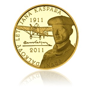 Ing. Jan Kašpar se narodil 20. května 1883 v Pardubicích. Již v závěru studia strojního inženýrství na pražské technice se zajímal o létání a v roce 1908 nastoupil do zaměstnání u firmy, která vyráběla hliníkové součásti pro vzducholodě. V té době se už v Evropě konaly první úspěšné pokusy s letouny těžšími než vzduch, a tak se rozhodl stát se nejen prvním letcem v Čechách, ale zároveň i prvním leteckým konstruktérem. Svůj slavný let Pardubice – Velká Chuchle, při němž překonal vzdálenost 121 km za 92 minut ve výšce asi 800 m, podnikl Kašpar 13. května 1911. Uskutečnil více leteckých i konstruktérských pokusů, avšak tento historický let byl i v evropském měřítku úctyhodný výkon a nejdelší přespolní let v tehdejším Rakousko-Uhersku. Letoun Blériot XI., se kterým tento let uskutečnil, daroval Kašpar v roce 1913 Technickému muzeu Království českého, dnešnímu Národnímu technickému muzeu v Praze, kde je vystaveno dodnes. Autor návrhu, MgA. Miroslav Schovanec, DiS, umístil na averzní stranu portrét Jana Kašpara s vlastnoručním podpisem a vznášejícím se letadlem v pozadí. V opisu je nápis „První dálkový let Jana Kašpara“ a letopočty uvádějící sté výročí prvního dálkového letu. Na reverzní straně je z čelního pohledu vyobrazeno letadlo Blériot XI., se kterým Kašpar realizoval první dálkový let v Čechách s letadlem těžším než vzduch. Limitovaná emise 400 kusů, číslováno.