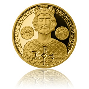 Zlatá pamětní Smart mince Karel Veliký vychází v omezeném nákladu pouhých 500 ks. Jedná se o mimořádnou emisi České mincovny, první ze série Mince tří císařů. Výtvarný návrh pochází z dílny špičkového akademického sochaře Vladimíra Oppla. Na reverzní straně autor vyobrazil portrét Karla Velikého inspirovaný bustou z katedrály v Cáchách, kde se nachází i trůn tohoto prvního římského císaře. Na averzní straně pak najdeme portrét královny Alžběty II. Není bez zajímavosti, že britská královna je potomkem Karla Velikého v 41. generaci v linii vedoucí přes Karla IV.