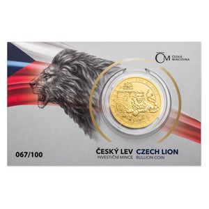 Zlatá uncová investiční mince Český lev 2019 číslo reverse proof