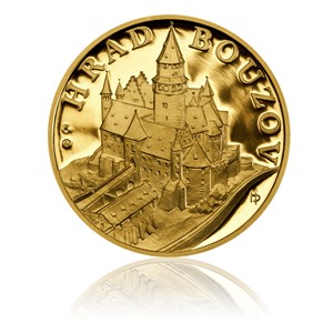 Hrad Bouzov patří mezi nejvyhledávanější památky v České republice a je to oblíbené místo filmařů. Nachází se ve stejnojmenné obci západně od města Litovel na střední Moravě. Založení hradu se datuje do počátku 14. století. Jeho dnešní podoba však vznikla rozsáhlou romantickou přestavbou na přelomu 19. a 20. století. Majitelé hradu, jenž získal patrně jméno po svém prvním známém držiteli Búzovi z Búzova, se často měnili. V jeho držení se vystřídala celá řada českých a moravských rodů. V roce 1999 byl hrad prohlášen národní kulturní památkou. V současnosti je Bouzov vyhledávanou lokalitou pro natáčení filmů a televizních projektů. Autor medaile Mgr. Petr Horák zvolil jako motiv averzní strany perspektivní pohled zepředu na hrad Bouzov, v horní části umístil v částečném opisu název hradu. Na reverzní straně je zachycena část interiéru hradu, sál s gotickým žebrovím, sloupem a erbem moravského markraběte Jošta, který byl jedním z četných majitelů hradu ve 14. století. Limitovaný náklad 300 kusů.