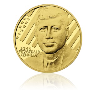Medaile věnovaná Johnu Fitzgeraldu Kennedymu vznikla jako pocta 35. prezidentovi USA (1917–1963), jehož život násilně ukončila kulka atentátníka v roce 1963 v Dallasu. Medaile byla vydána k 50. výročí zvolení Kennedyho prezidentem. Jméno nesmírně populárního prezidenta je spojováno mj. s větou, kterou pronesl ve svém inauguračním projevu v lednu 1961: Neptej se, co může udělat tvá zem pro tebe. Ptej se, co můžeš ty udělat pro svou zem. Averzní strana medaile nese portrét Johna Fitzgeralda Kennedyho, v pozadí s americkou vlajkou. Reverzní strana znázorňuje Kapitol – sídlo amerického Kongresu v hlavním městě USA, Washingtonu. Limitovaná emise 300 kusů.